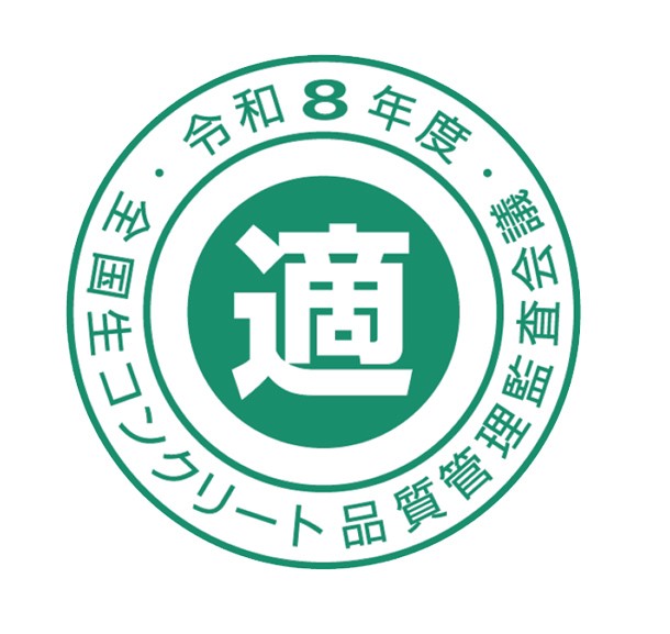 令和8年3月23日付で〇適マーク(生コンクリートの品質を確保できる仕組みがあり、かつ品質が全国生コンクリート品質管理監査会議の定める判定基準に適合していると判断された工場に対して交付される、合格工場を示す識別標識)を取得しました。